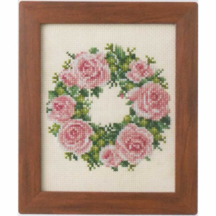 季節を彩るフラワーアレンジメント-バラのリース-コスモ-クロスステッチ-刺繍キット