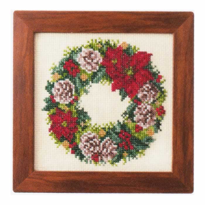 季節を彩るフラワーアレンジメント ポインセチアのリース ルシアン(コスモ) クロスステッチ 刺繍キット