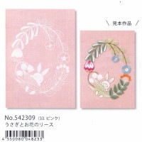刺繍(キット・用具・額) > ルシアン(コスモ)刺しゅうキット > 刺しゅうを楽しむプリントクロス パート2 > ルシアン 刺しゅうを楽しむプリントクロス Artist Collection コハナ 542309ウサギとお花のリース ピンク 額付き